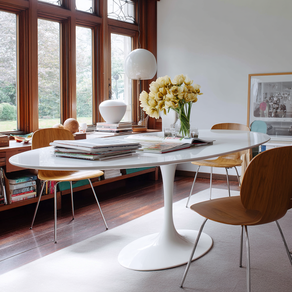 As mesas Cone seguem em alta, adaptando-se perfeitamente a todos os estilos de decoração. Disponíveis em diversas cores, tamanhos e acabamentos, elas são ideais para complementar sua cozinha, sala de jantar ou varanda.